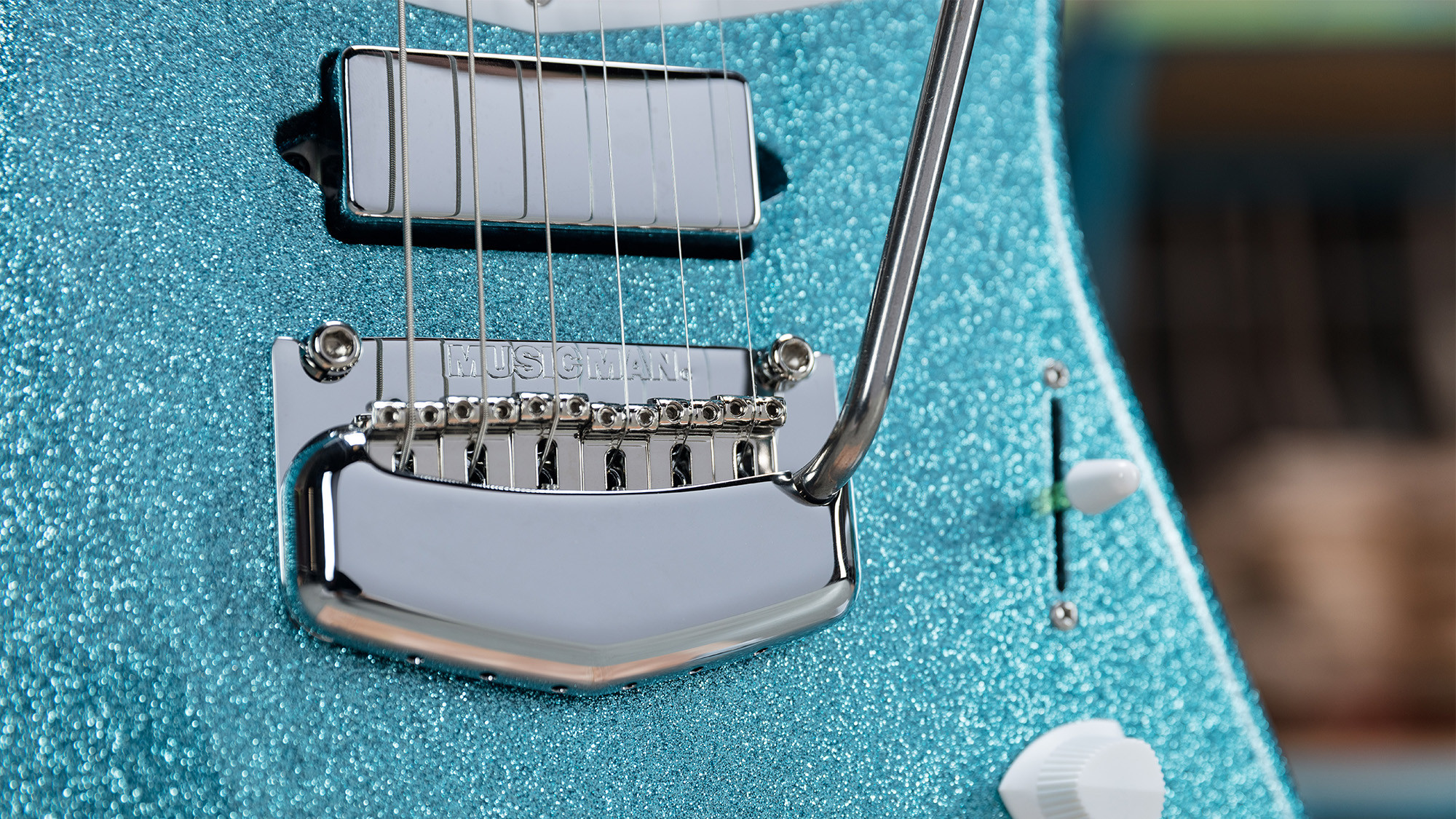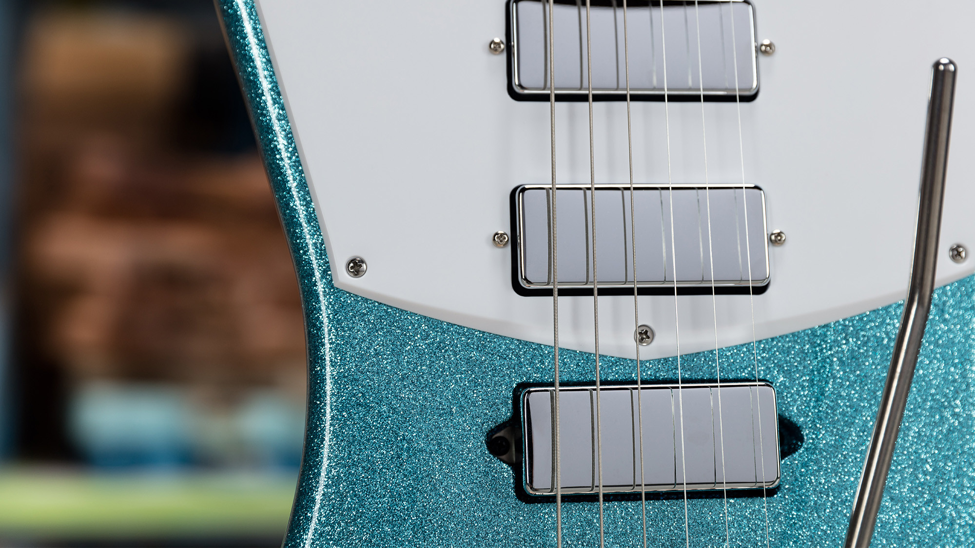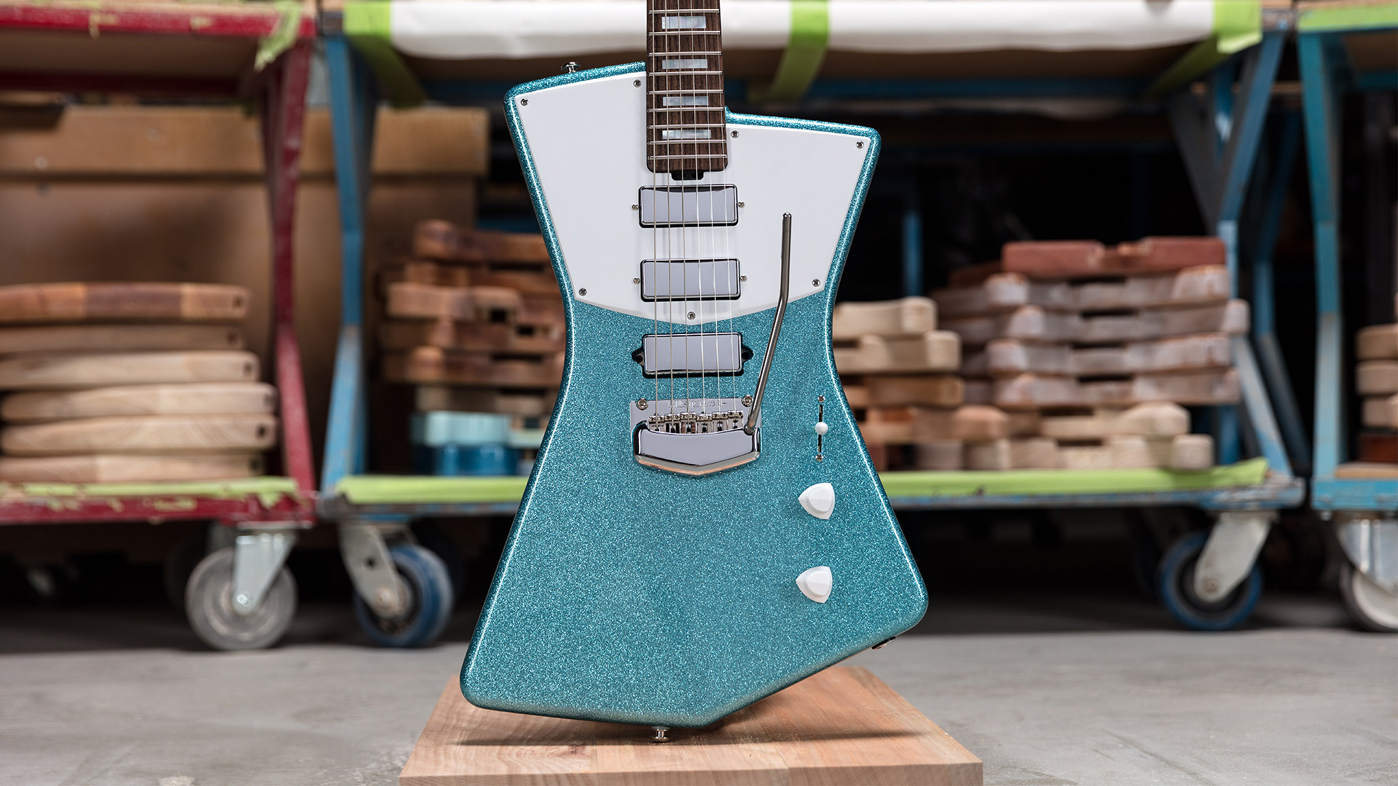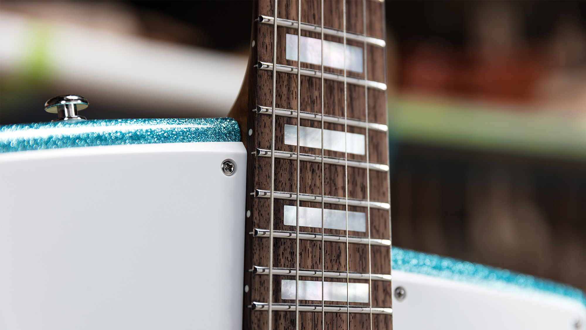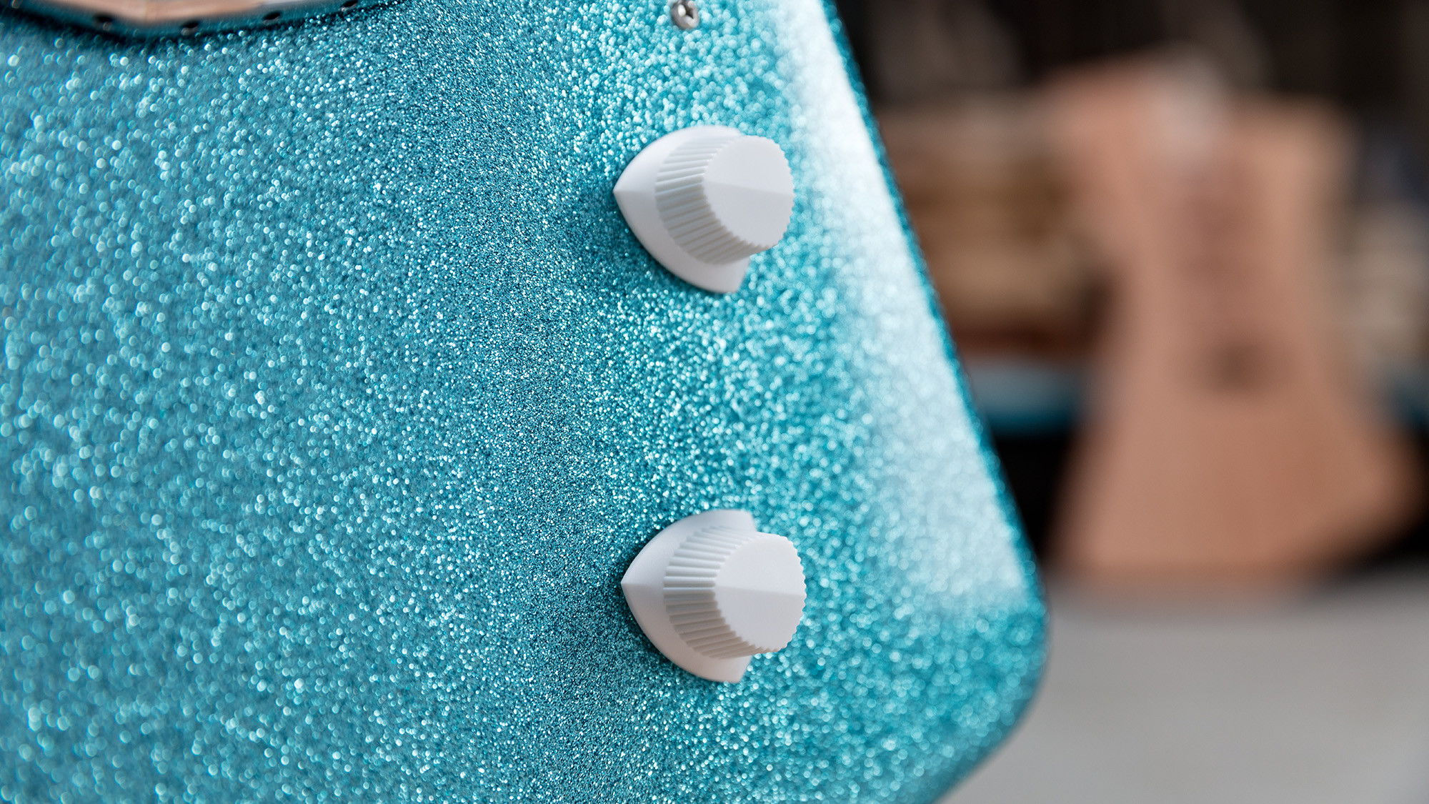 Cuerpo muy ligero de caoba africana en un exclusivo acabado Turquoise Crush Sparkle