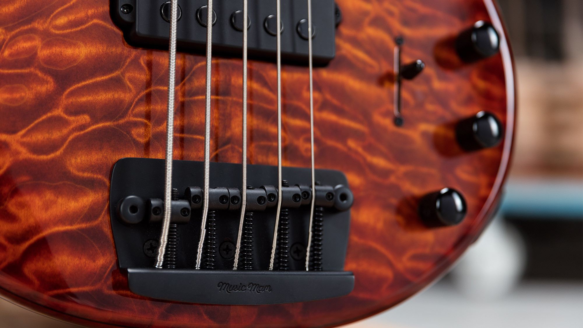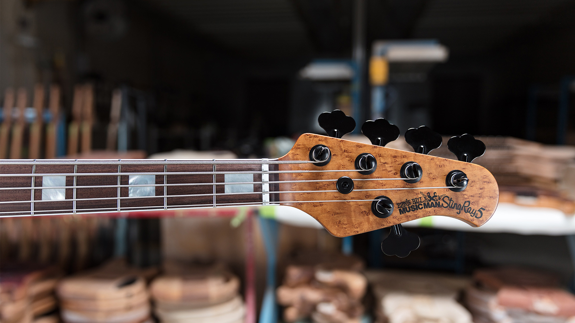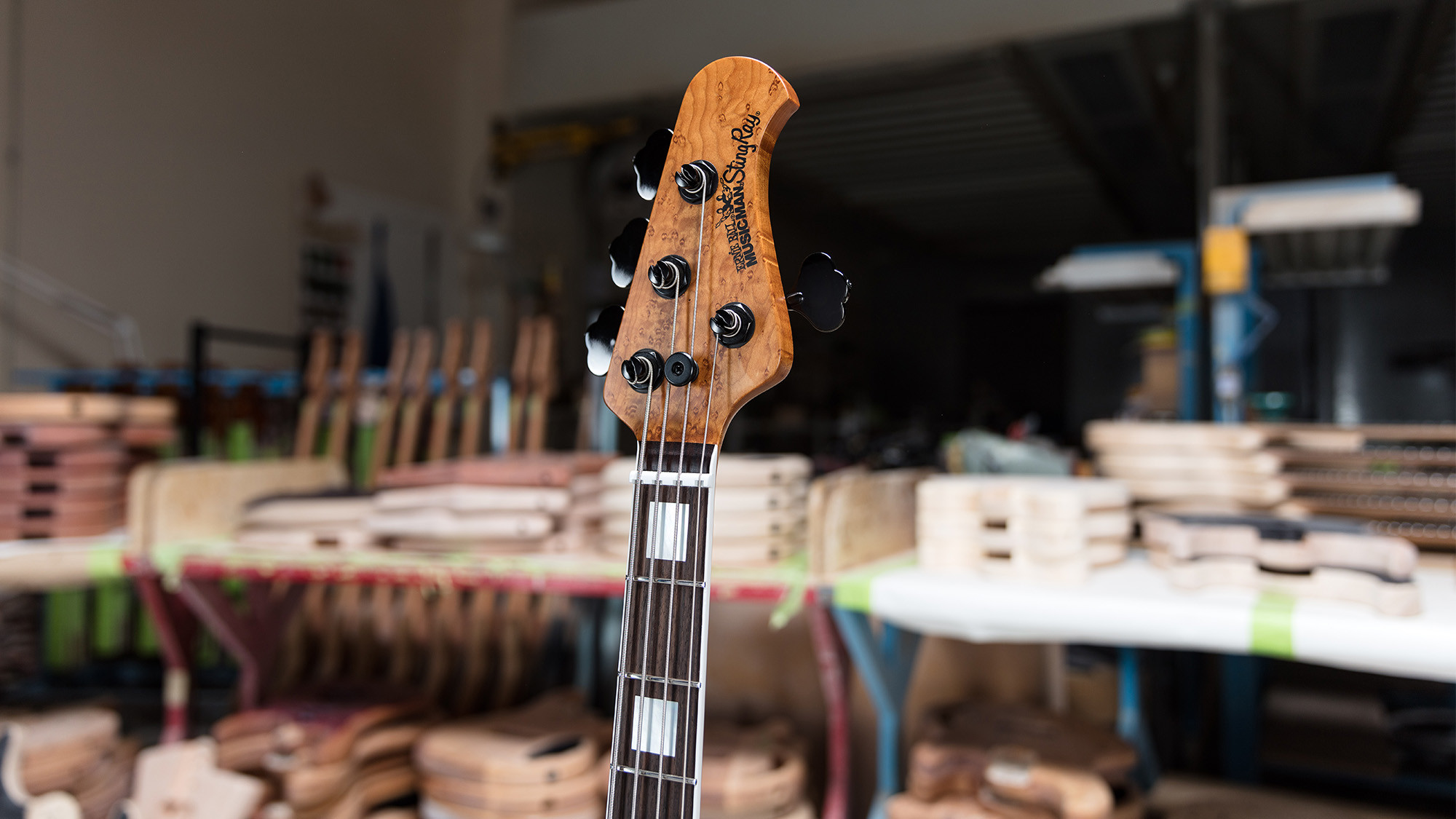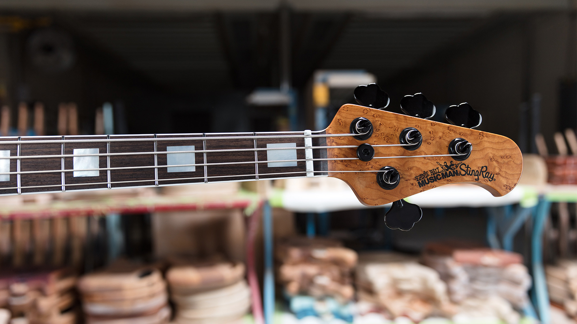 Precioso mástil roasted con clavijeros Music Man de color negro