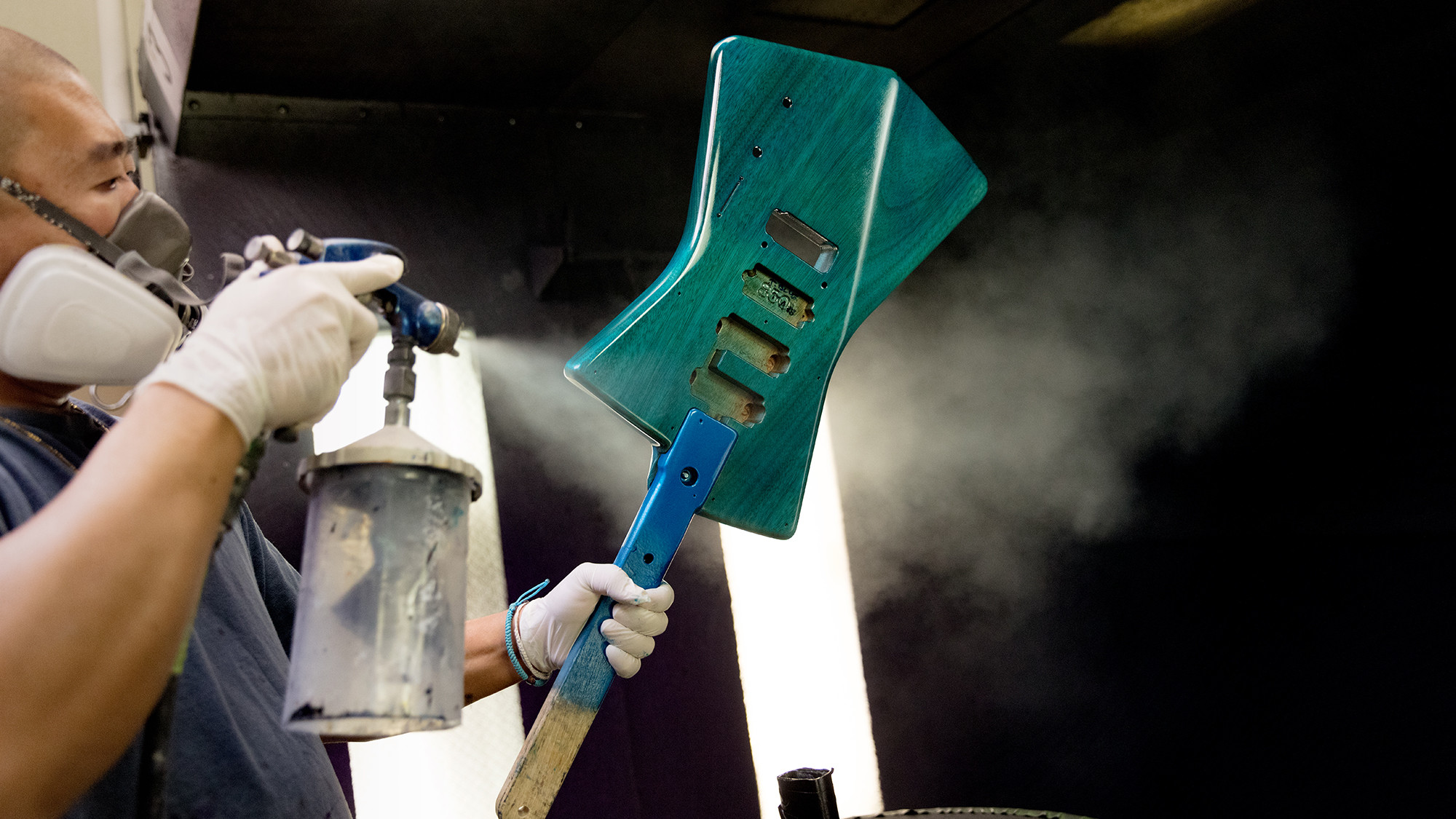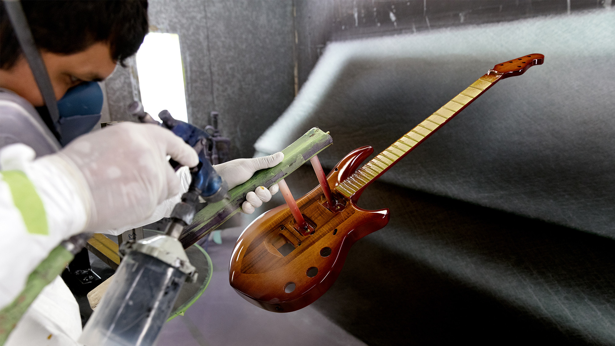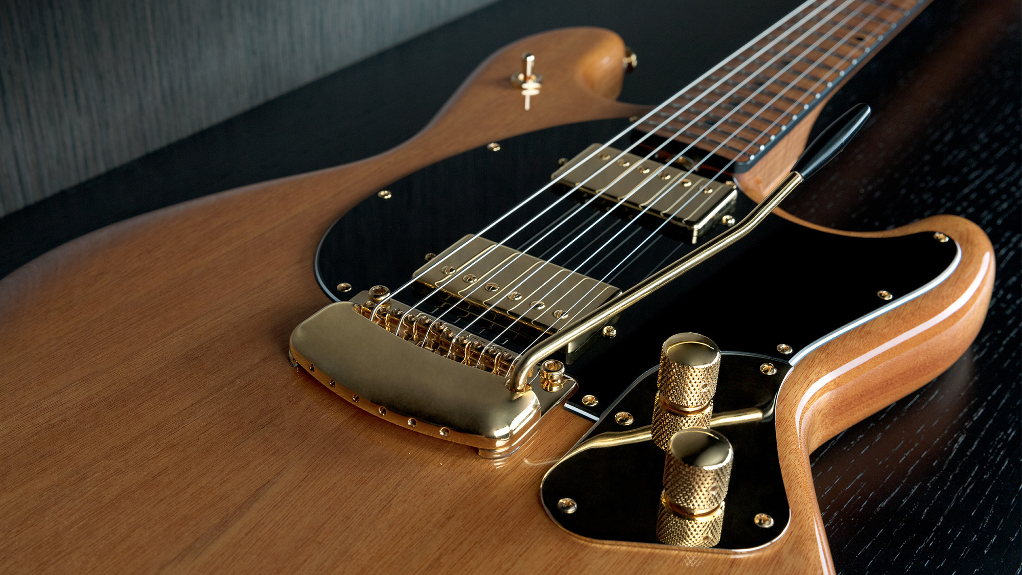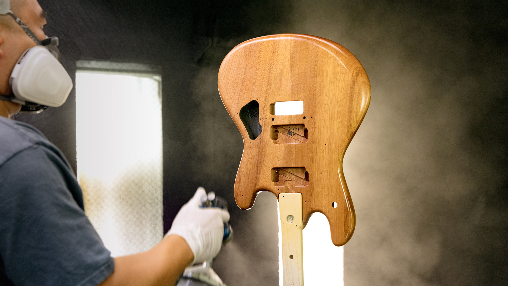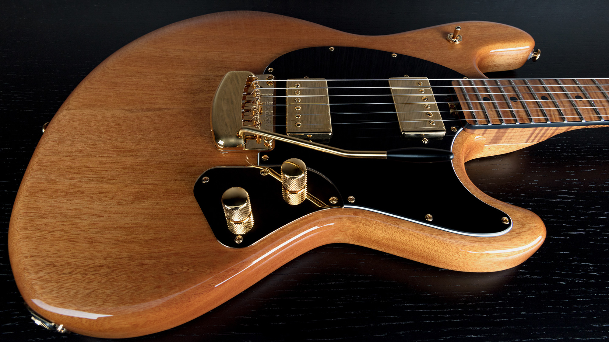 El ligero cuerpo de caoba africana se ha pintado a mano con un acabado translucent burst especial de 2 tonos